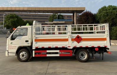 底盤配置:3360軸距,1800mm單排駕駛室,騰豹3.0發動機115馬力,危險品專用底盤,空調、方向助力、油剎,5檔,中控鎖,電動門窗,排氣管前置,前盤碟剎,700鋼絲胎,限速、ABS。