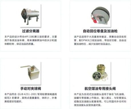 我公司生產的飛機加油車主要零部件有:過濾分離器、自動回位卷盤及加油槍、手動對夾球閥、航空煤油專用接頭閥、浮球液位計、鋁制自動排氣閥、靜電接線盤、流量表、防溢閥、活塞式壓差計、閉目取樣器、鋁合金氣動球閥等。