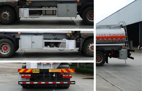 罐體嚴格按照公告制作12.6立方,介質:柴汽煤,單倉帶80-60專用油泵,全車2.5寸進出管道,一個歐標罐口,一個海底閥,海底閥帶緊急切斷閥,海底閥帶自動關閉系統一套,一個下裝油,一個油氣回收,一個防溢流探桿及探座(下裝全套裝副駕駛一側),預留加油機操作箱(裝在正駕駛一側),歐式鎖,牌照燈,安全告示鐵牌,帶可折疊護欄,標配一個防火帽,兩根等長輸油管,兩個滅火器,車尾一個工具箱。3、油漆銀粉色,貼3M反光帶,反光條,尾部全白反光條,三個“易燃液體”表,三個安全告示。