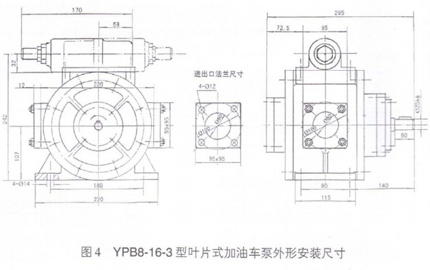 ![]() 圖 4 YPB8-16-3 型葉片式加油車泵外形安裝尺寸