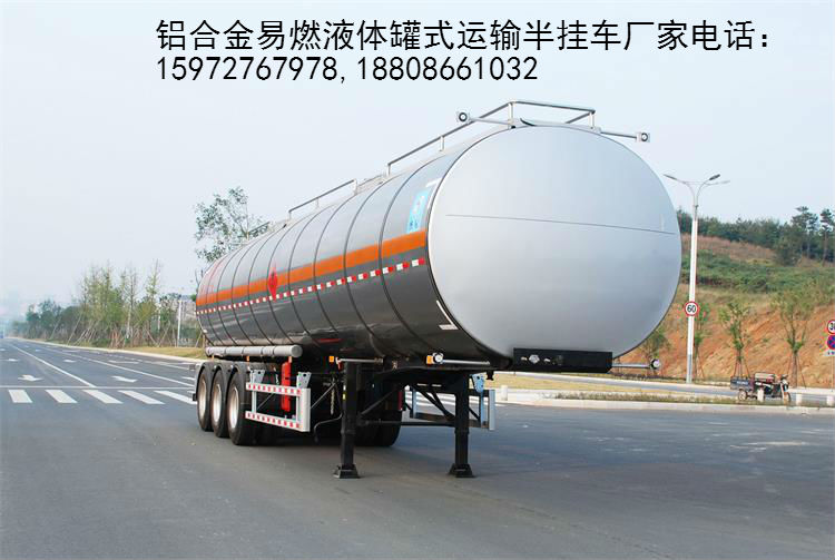 罐體材質:鋁合金;罐體容積:42.6m,;介質:原油,石油、石腦油;三軸,雙胎;罐體為保溫結構,罐體外形尺寸(mm):11950x2466x2269,內罐尺寸(mm):11750 X 2266 X 2069,保溫層厚度100mm?蛇x裝玻璃鋼外蒙皮;ABS可選裝:威伯科汽車控制系統(中國)有限公司或浙江萬安科技股份有限公司;側防護為鋁合金型材,采用螺栓連接,后防護采用Q235或鋁合金型材,后卞部防護用螺栓連接;采用適用于危險品運輸半掛車的牽引車。 鋁合金易燃液體罐式運輸半掛車參數: 【主要技術參數】